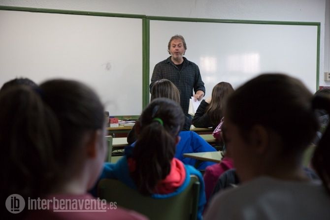Una de las aulas del IES Los Sauces de Benavente terminó recitando poesía gracias a la dinámica charla del autor salmantino Raúl Vacas, que desde primera hora de la mañana hasta las 11:00 acercaba esta figura literaria a los alumnos de 1º y 4º de la Eso y 1º de Bachillerato.