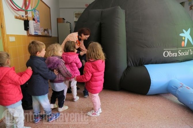 Mientras unos alumnos escuchaban las nociones de este astrónomo aficionado, los más pequeños disfrutaron de una proyección en el planetorio instalado en una de las aulas del centro, donde a través de una historia descubrieron la magia que se esconde en el cielo.