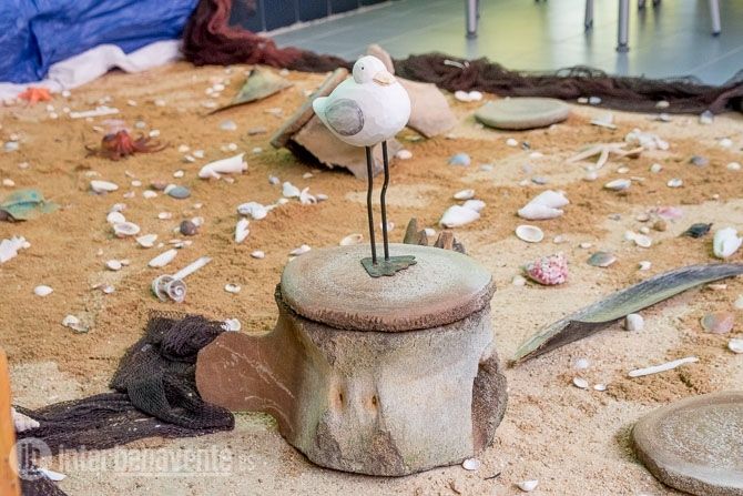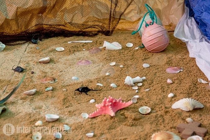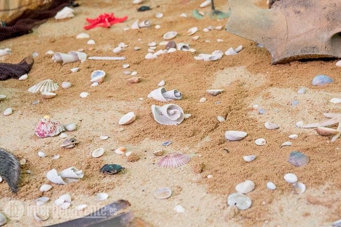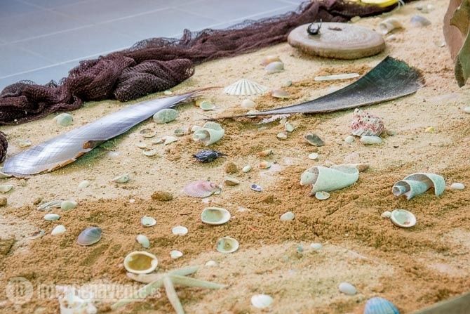 En la exposición cuentan con dos vértebras de ballena cedidas por el profesor Carlos Fernández del departamento de Prehistoria de la Universidad de  León. También ha colaborado la directora del Museo Massó de Bueu (Pontevedra), Covadonga López, que prestó para la exposición unas caracolas, barbas de ballenas y dos redes de pesca con olor a mar,  recién salidas del atador de redes. También se pueden contemplar infinidad de conchas y algunos bolsos de sirena. Un pedacito de mar al alcance de todos los alumnos y tambien de otros colegios que si así lo desean pueden disfrutar de esta exposición.