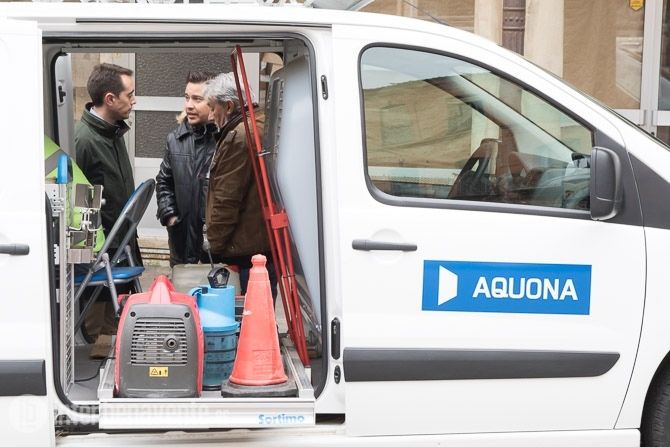 El Jefe de Explotación de AQUONA en Benavente, Sergio Benito, explicaba el funcionamiento de los vehículos presentes en la Plaza Mayor, entre los que se encontraba un camión que se encarga de la limpieza y desatasco de las redes y un nuevo vehículo dotado de una Cámara de Inspección de Alcantarillado, una tecnología de última generación que funciona con una cámara que se introduce con un cable por las conducciones, previamente limpiadas, visualizando en tiempo real el conducto y detectando cualquier tipo de incidencia que pudiera suponer una pérdida de agua.