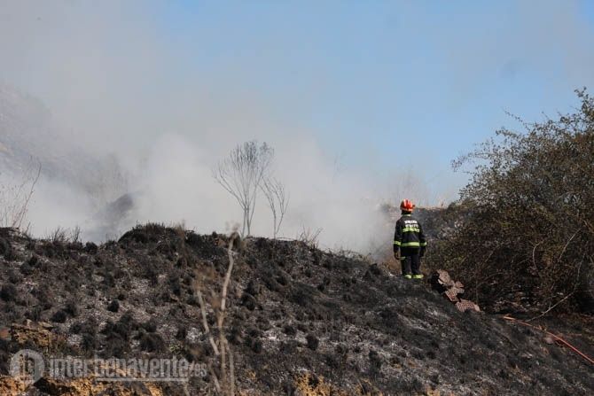 Un nuevo incendio ha calcinado gran parte de la superficie de los Cuestos donde se asienta parte del Barrio San Isidro tras reavivarse esta tarde, después de que por la mañana se originara y quedara extinguido.