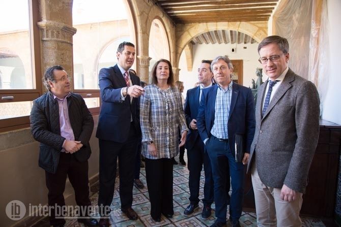 La Consejera de Cultura, María Josefa García Cirac, acompañada del Alcalde de Benavente, Luciano Huerga, el Delegado Territorial de la Junta, Alberto Castro y el Arquitecto de las obra Julio Carbajo, han comprobado el resultado final de las obras de mejora del claustro del Hospital de la piedad.