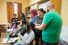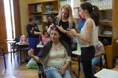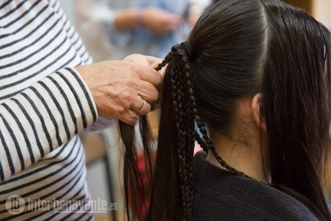 La profesora, Nuria Salazar, experta en cultura tradicional, comenzó con unas nociones teóricas, mostrando fotografías de distintos tipos de peinados y explicando las cualidades para realizar cada uno.