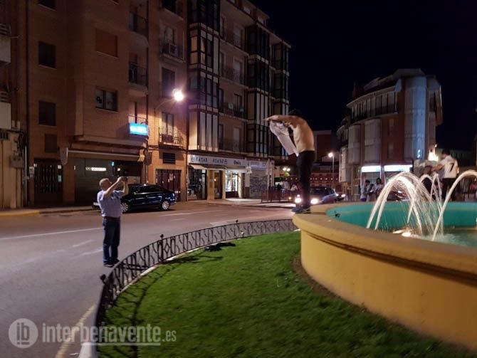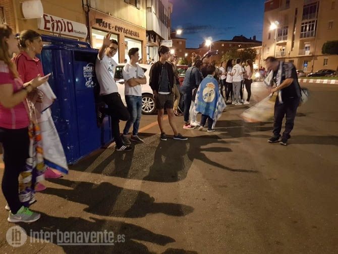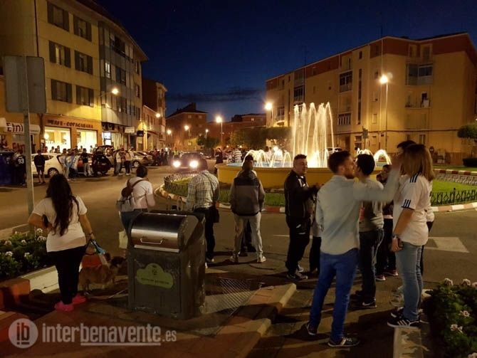 Algunos aficionados benaventanos del equipo se han congregado en la fuente de la Plaza de las Eras donde han celebrado ser campeones de liga.