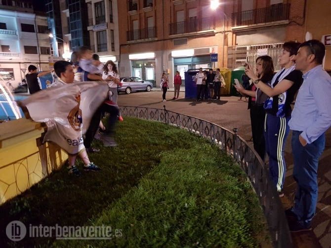Aficionados benaventanos del Real Madrid celebran el título de liga en la fuente de las Eras