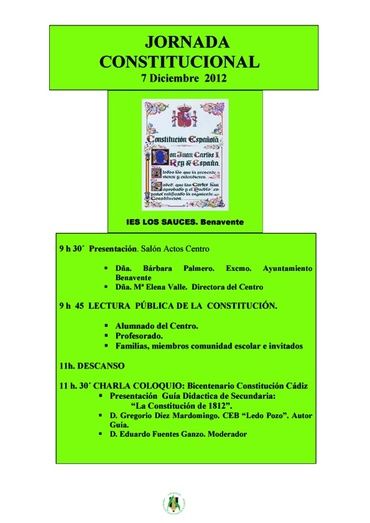 Además el Centro de Estudios Benaventanos “Ledo del Pozo” presentará su guía docente para secundaria sobre la Constitución la “Pepa”.
