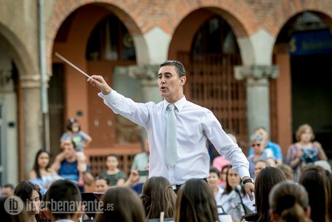 El compositor y director alicantino dirigió ayer a la Banda de Música Maestro Lupi en la Plaza Mayor de Benavente, en un fantástico concierto en el que estuvo acompañado en algunos temas por el director de la banda José López Cid y también por el compositor David Rivas