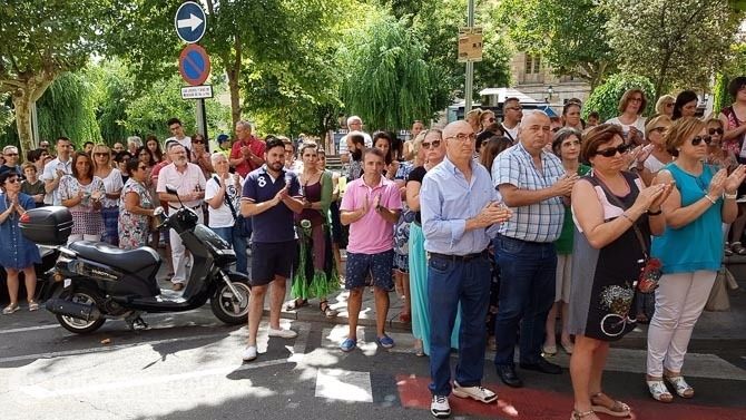 A las 13:15 horas alrededor de 150 personas se han concentrado a las puertas del Ayuntamiento de la Plaza del Grano para guardar un minuto de silencio por las víctimas del atentado producido ayer en Barcelona y que ha costado la vida de 13 personas y un centenar de heridos, además del intento de atentado frustrado en la localidad de Cambrils que finalizó con una intervención policial con cinco terroritas abatidos.