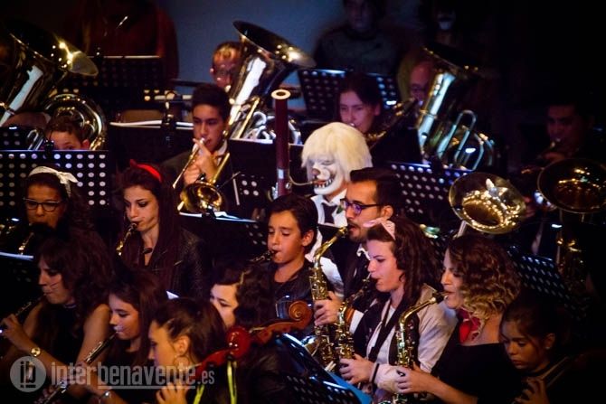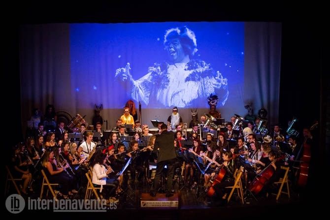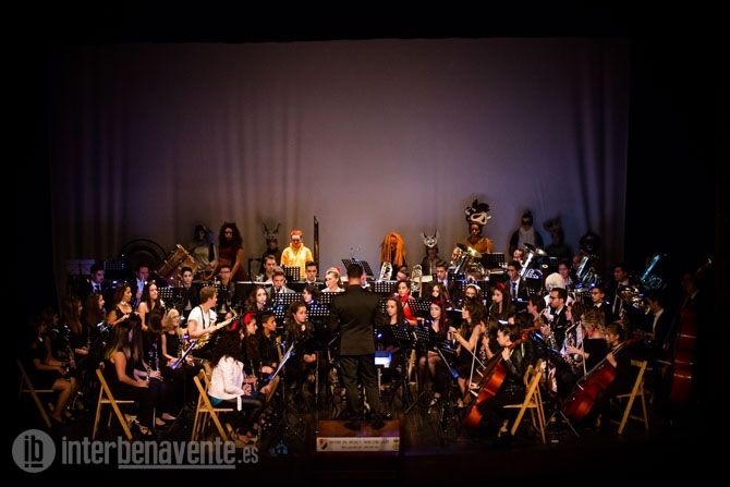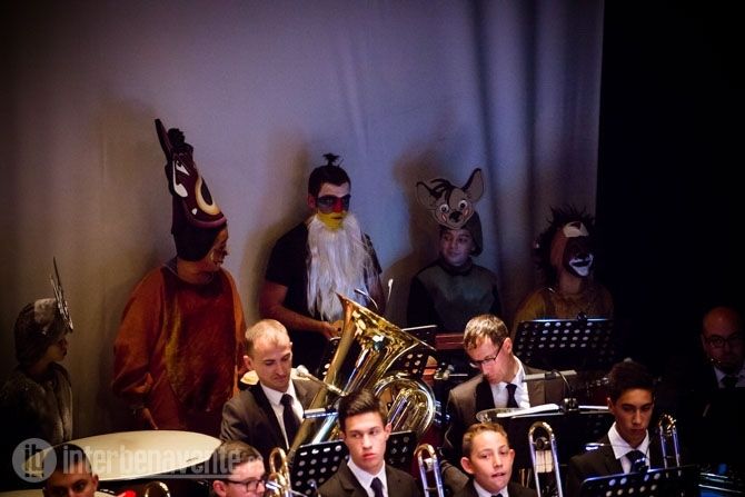 Una vez más la Banda Maestro Lupi subió al escenario con la idea de sorprender al público y lo consiguió. El concierto comenzaba con las luces apagadas y al encenderse pudimos ver cómo los integrantes de la Banda estaban vestidos por secciones de varios de los musicales que íbamos a escuchar. Entre los músicos podíamos distinguir en la percusión a los personajes de El Rey León, en la zona de clarinetes a los personajes de Cats y el resto de viento y cuerda a Grease.