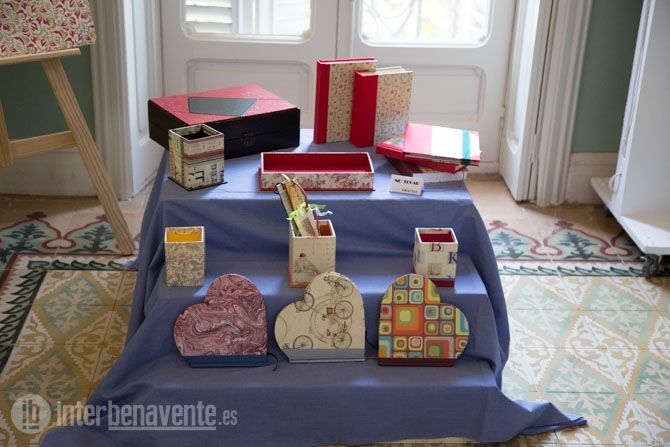 Estos trabajos están realizados por unos 40 personas de los cursos de dos años, según informaba la profesora, María Jesús Correa Ugidos, de Encuadernaciones Sama. “Intentamos que la mayoría de cosas las puedan hacer en casa con los materiales que tengan, aunque luego tengan que ir a rematar alguna en la Casa de Cultura con alguna máquina específica”.