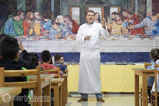 La XXIV edición de Día del Gusto y el Producto que organiza a nivel nacional la agrupación Eurotoques, en la que participan 60 cocineros, llevó hoy a este colegio a Pedro Mario Pérez, cocinero del Restaurante El Ermitaño de Benavente, una estrella Michelín para enseñar a los niños a desayunar con imaginación