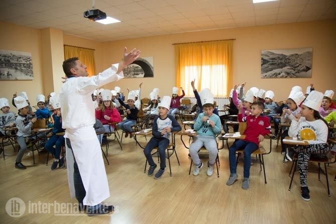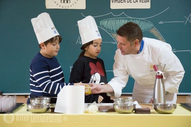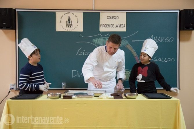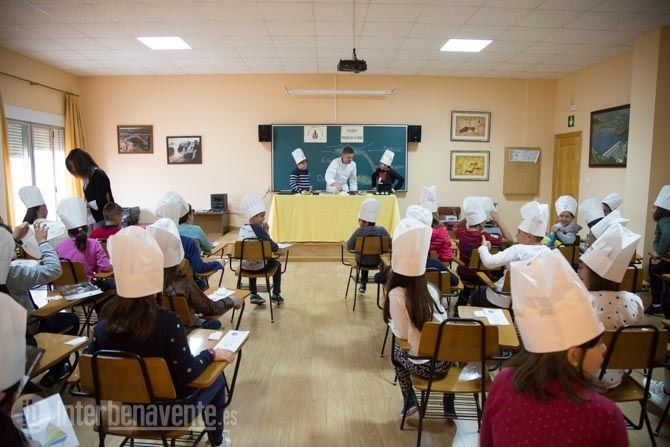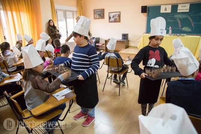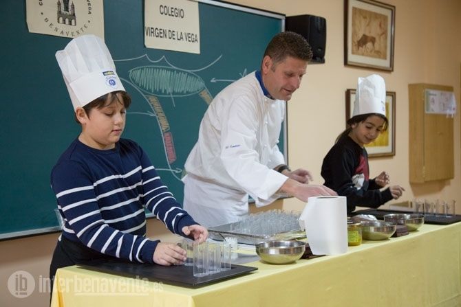 En el Colegio Virgen de la Vega han querido participar un año más junto a uno de los Chefs del Restaurante el Ermitaño, Óscar Manuel Pérez, para que los alumnos de cuarto de primaria aprendieran a detectar en qué partes de la lengua podemos detectar más unos sabores u otros. El curso elegido fue 4º de primaria, que contó con 50 alumnos de dos clases distintas.