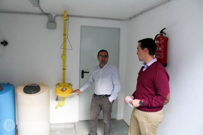 Una obra civil que se ampliaba para hacer una dependencia destinada a los bidones de cloro, que con un sistema automatizado aportan la dosis necesaria para el manteniemiento del agua en la Piscina. Además de la instalación de un grifo para los ojos y una ducha si en algún momento se produce una intoxicación.