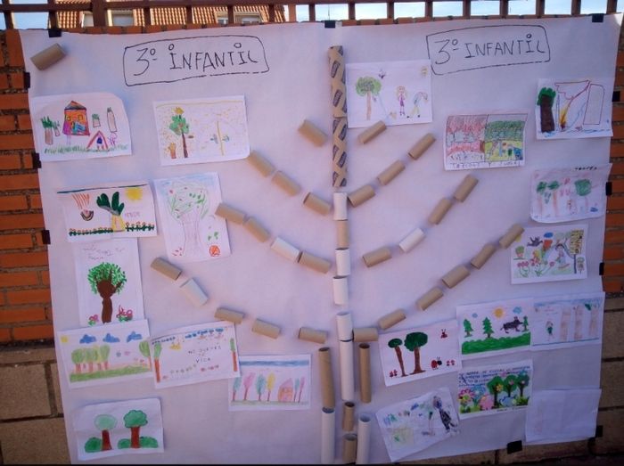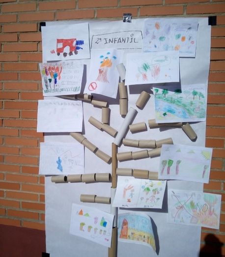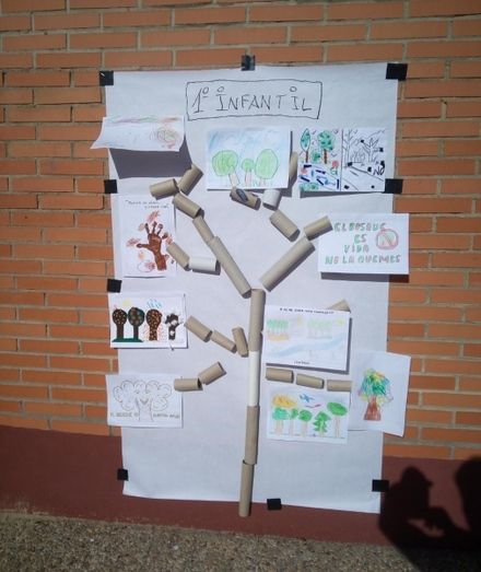 Además, los más pequeños realizaron dibujos sobre el bosque y los pegaron junto a sus padres formando árboles, los cuales adornarán los pasillos del centro durante todo el año.