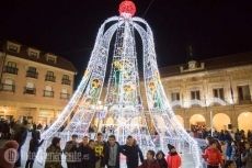 La gran campana de luces led instalada en la Plaza Mayor junto con la ornamentación en la fachada de la Plaza Mayor ha sido el punto central de este acto, que tras su encendido la Coral Benaventana ha interpretado varios villancicos, mientras los asistentes se retrataban con esta campana de 9 metros de altura.