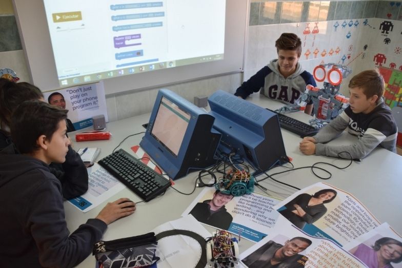Entre los días 4 y 11 de diciembre, hemos desarrollado con los alumnos una serie de actividades de aproximadamente una hora de duración para iniciar y reforzar sus conocimientos de programación y robótica. Se fomenta el trabajo cooperativo, se dan cuenta de que las Ciencias de la Computación son una actividad social y colaborativa.