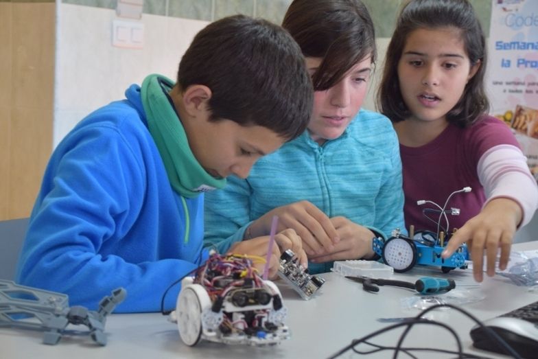 Se inician en la programación con actividades relacionadas con un entorno amigable en el que programan a los robots de Star Wars, Minecraft o Angry Birds entre otros personajes conocidos. Con la programación de juegos, aplicaciones para trabajar los conceptos básicos de computación desde las distintas áreas y el montaje y programación de robots finalizamos la Hora del Código 2017.