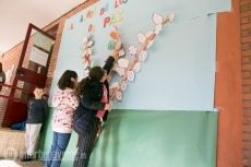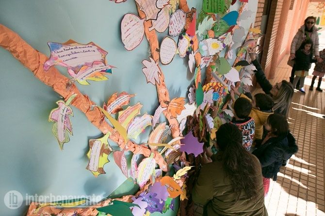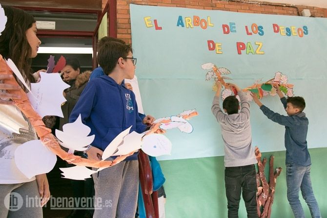 Los alumnos de este centro celebraron el día de la Paz añadiendo hojas con sus deseos de paz a un gran mural en el que representaron un gran árbol
