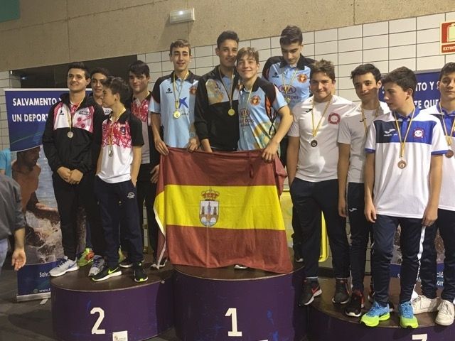En los relevos el equipo juvenil formado respectivamente por Javier , Ander , Iván y los dos Diegos consiguen el título de campeones de castilla y león en las pruebas 4x50m natación con obstáculo, 4x25m arrastre de maniquí y 4x50m combinada de salvamento haciendo en todos ellos récord de Castilla y León.