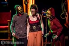 Música y efectos sonoros en directo, que introducen al espectador en un atmósfera lúgubre, con una espectacular iluminación que permite destacar un vestuario inspirado en el de la época en la que se desarrolla la obra, pero transformado con aires futuristas y muy acorde con la escenográfica. El resultado es un espectáculo muy atractivo visualmente en el que los actores imprimen un profundo nivel dramático que envuelve al espectador y lo mete de lleno en la obra.