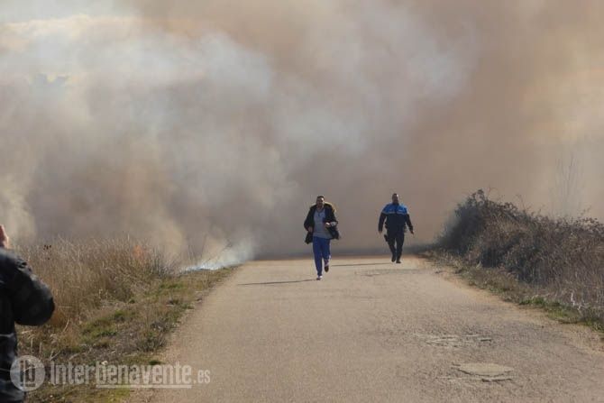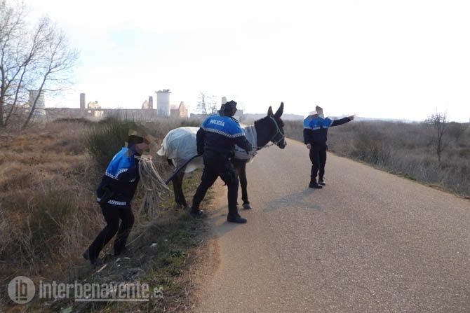 Los agentes de la Policía Local desplazados hasta el lugar se encargaron de poner a salvo a un asno que se encontraba en la zona, mientras que los Bomberos de Benavente sofocaban las llamas cercanas al Restaurante el Ermitaño.