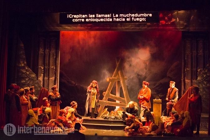 En Benavente se contó con escenografía y un gran reparto para dar vida a los personajes en los que se centraba esta Ópera de 4 actos, donde relata la sentencia a la hoguera de una gitana acusada de embrujar al hijo menor del Conde Luna. La hija de la gitana es la encargada de vengar la muerte de su madre, y rapta al segundo hijo del Conde Luna para quemarlo vivo, pero tras su enajenación se dio cuenta que arrojó a las llamas a su propio hijo, por lo que el segundo varón del Conde fue criado por la gitana.
