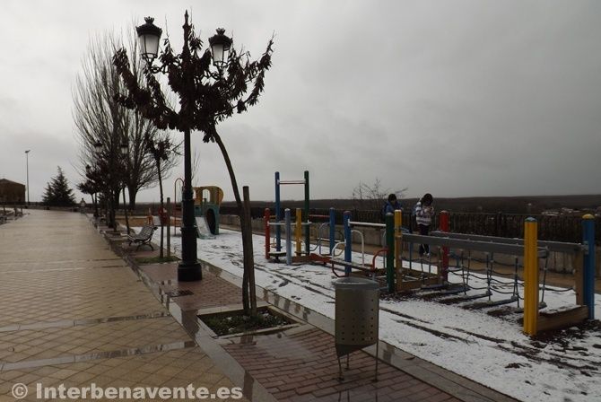 En torno a las 11:00 de la mañana la nieve caía con fuerza en Benavente, pero sólo consiguió permanecer en jardines, y en los cuestos de la Mota.