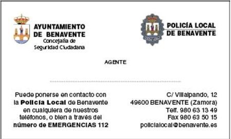 El Ayuntamiento de Benavente crea esta tarjeta para que los ciudadanos puedan llamar directamente en el caso de requerir los servicios de la policía o del 112.