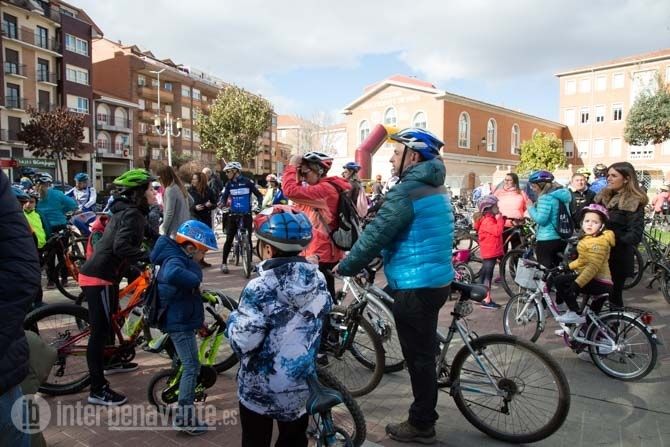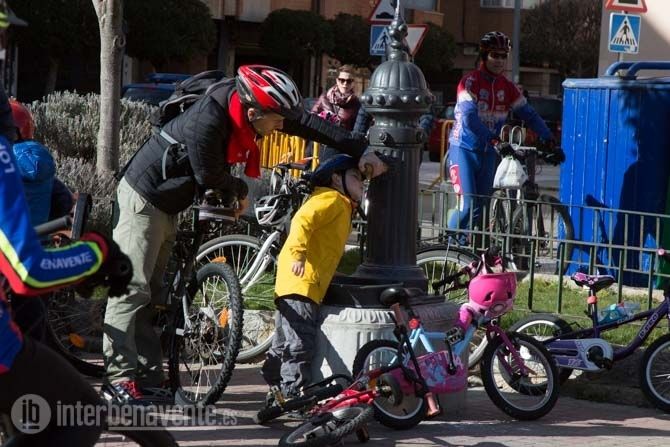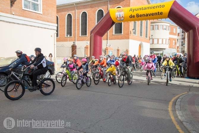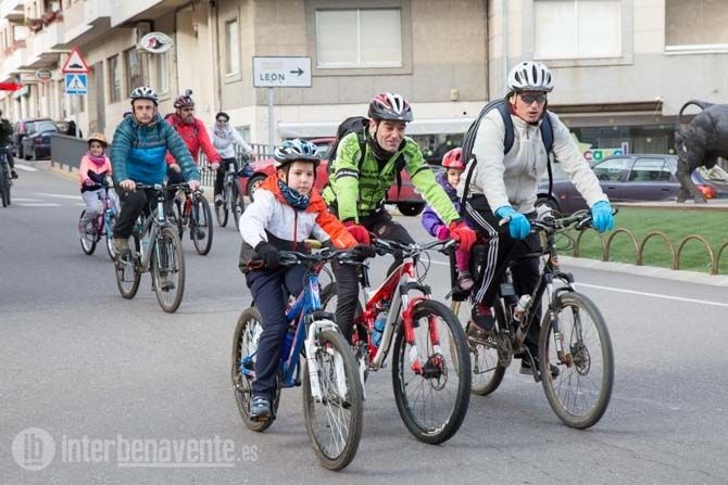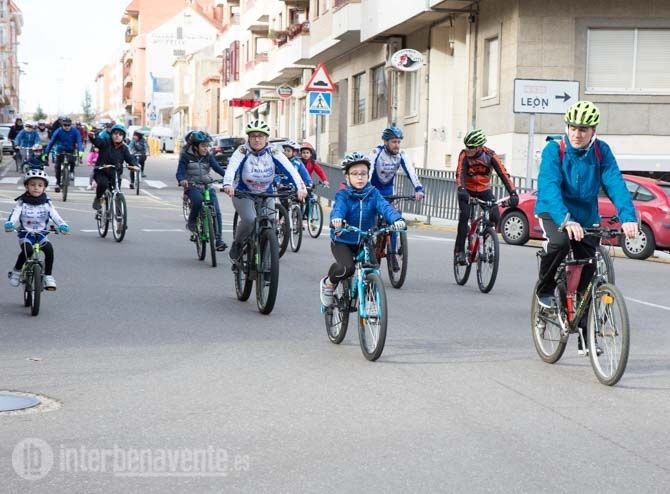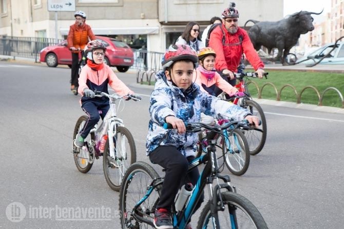 A la Plaza de las Monjas, lugar de salida de la marcha, acudieron casi 300 personas, padres y niños, que recorrieron 5,2 km en bici por las calles de Benavente.