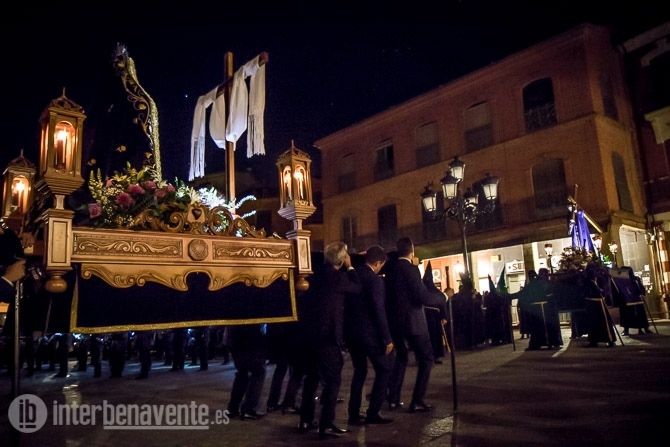 Los pasos ascendían por la Calle Santa Cruz hasta la Plaza Mayor donde se celebrará un encuentro entre todos los pasos y la venia entre la Virgen de Soledad y Jesús con la Cruz a Cuestas. La Banda de Música Maestro Lupi, interpretó la marcha "El paso", compuesta por su director José López Cid para la Semana Santa de Benavente, inspirada en el Cristo Yacente. A partir de ese momento la procesión se dividía en dos partiendo las imágenes a la Iglesia de San Juan y a la Iglesia de Santa María.