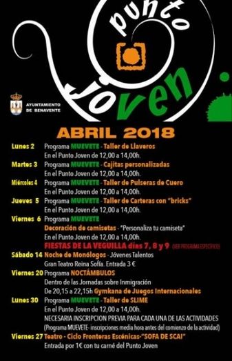 INSCRIPCIONES: mismo día de la actividad desde las 11:30h en el Punto joven por riguroso orden por límite de plazas.