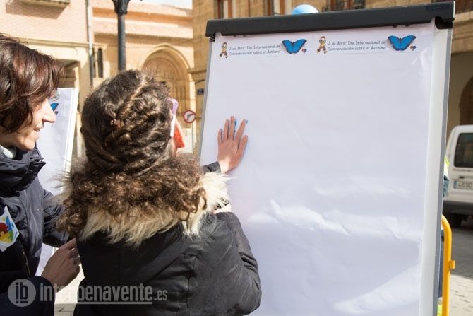 La Concejalía de Bienestar Social en el Consistorio benaventano organizaba un acto con motivo del Día Mundial de Concienciación sobre el Autismo que se celebra cada 2 de abril. El centro de la Plaza Mayor era el escenario elegido donde se agrupaban varios asistentes, algunos de ellos personas con autismo, para participar en las actividades que había dispuesto la Concejalía.