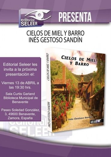 La escritora zamorana, Inés Gestoso Sandín, presenta su libro “Cielos de miel y barro” el próximo 13 de abril a las 19:30h en la Sala Curtis Garlan de la Biblioteca Municipal de Benavente.