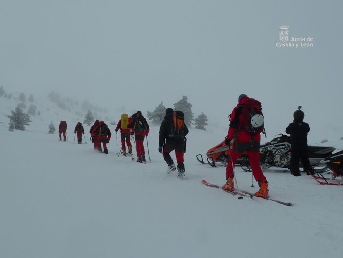 El Grupo de Rescate y Salvamento de la Junta de Castilla y León, junto con Asociación de Motonieves de Urbión, han efectuado en las Lagunas de Neila, Burgos, diversos ejercicios de prácticas en avalanchas dentro del programa de formación continuada que realizan los integrantes del Grupo de Salvamento.