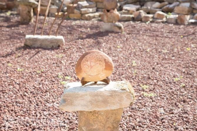 Una exposición que se divide en varias secciones entre las que destacan simbología celta, que representa el mundo simbólico, la parte de bendiciones protagonizadas por manos esculpidas que representan la paz y la concordia o el Camino de Santiago. A lo largo de la exposición se pueden ver espirales realizadas con vieiras, símbolo cantero adoptado por Gabi More.