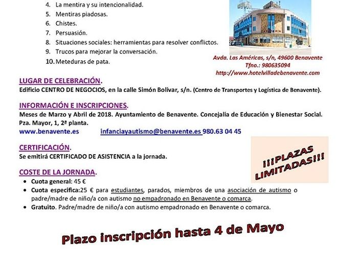 Hasta el 4 de mayo continúa abierto el plazo de inscripción para estas jornadas que se celebrarán el 5 de mayo en el Centro de Negocios de Benavente y contarán con Anabel Cornago autora de uno de los blogs más valorados ente los profesionales y familias