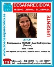 Agentes de la Guardia Civil y vecinos de Castrogonzalo buscan a una joven de 33 años desaparecida esta tarde en la localidad. La joven Leticia salió a pasear en la tarde de este jueves 3 de mayo por el pueblo y desde las 16 horas no se tiene noticias de su paradero.