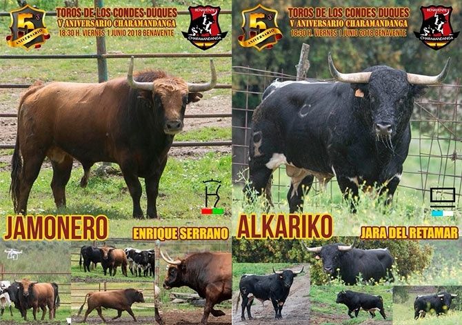 Dos espectaculares toros con mucha cara y trapio, procedentes de la ganadería de Jara del Retamar y Enrique Serrano para celebrar el V Aniversario de la Asociación Taurina Charamandanga