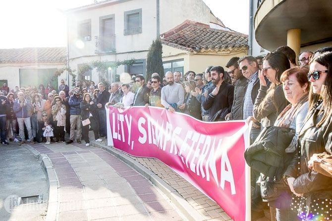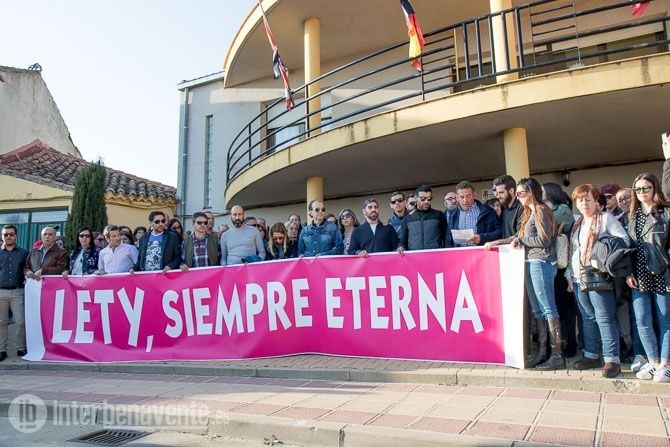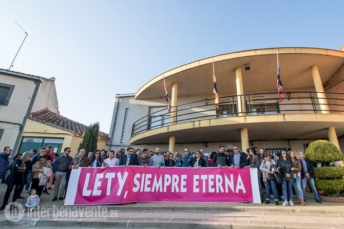 En la fachada del Ayuntamiento una gran pancarta con la leyenda “Lety, siempre eterna”. El padre de su novio David, se dirigió a los asistentes agradeciendo la compañía para darles fuerza y posteriormente se guardó un minuto de silencio. Una vecina leyó una poesía dedicada a Leticia y algún vecino pidió que se encontrara cuanto antes al culpable para no seguir haciendo sufrir a la familia.