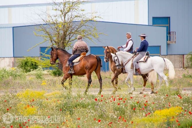 Regresaron de nuevo hasta la carpa situada en el Centro de Negocios, donde el grupo Ajolí cantó una salve rociera y después degustaron una paellada, para continuar con la música y los bailes flamencos durante la tarde, en un ambiente rociero y festivo.