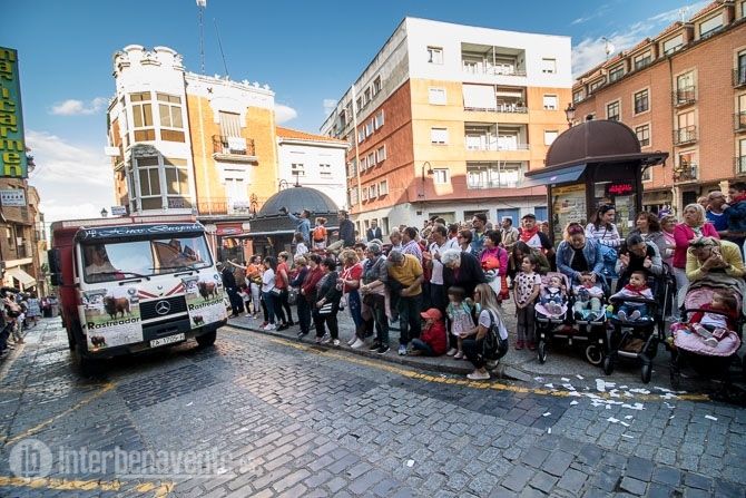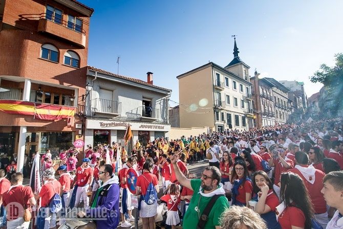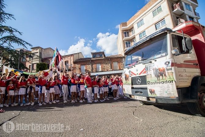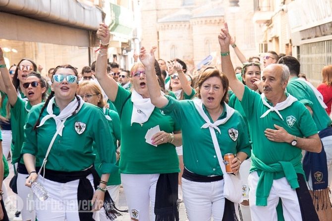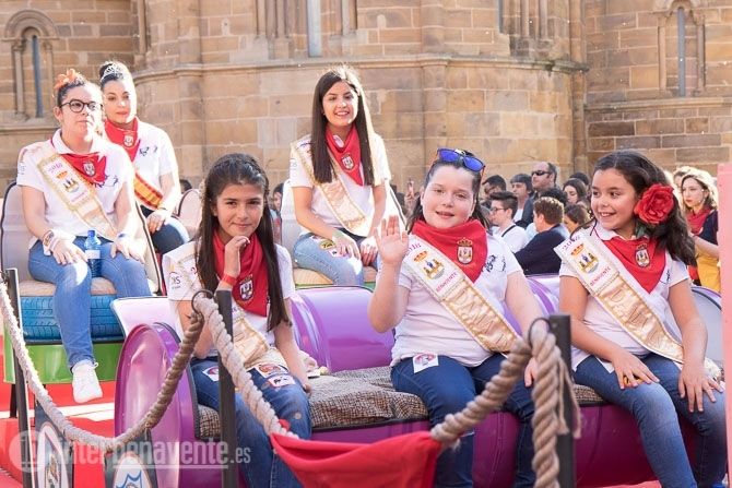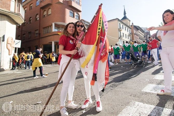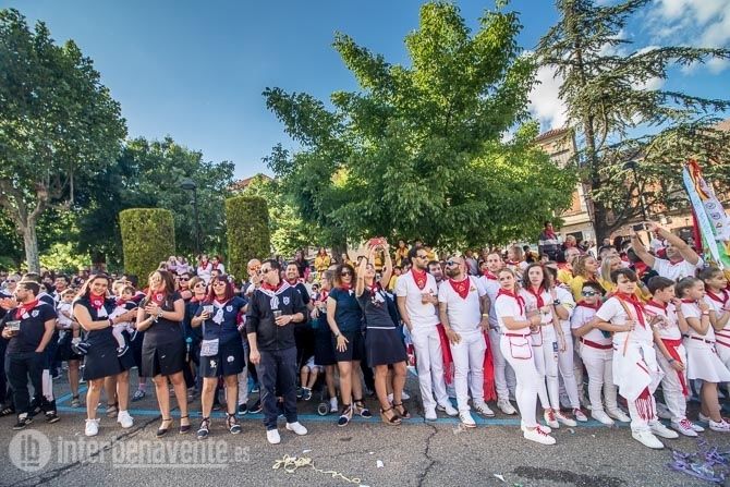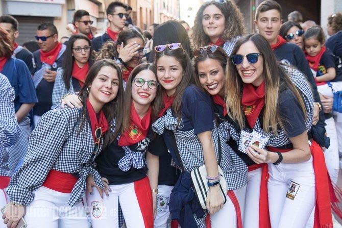 La carroza con la reina y las damas, acompañadas de la charanga abrían la comitiva, seguidas por los toros enmaromados y varias patrullas de la Guardia Civil y Policía Local. Detrás de ellos la música de las charangas de las peñas que amenizaron las calles del centro con sus cánticos y sus bailes.