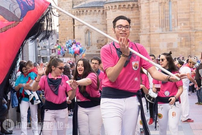El tiempo daba una tregua y permitía que el desfile del martes se realizara conforme a lo programado. Las trece peñas oficiales del Toro Enmaromado llenaban la Plaza del Grano de sus característicos colores a la espera de la llegada del camión que transportaba al torito del alba, Hacendero y al Toro Enmaromado, Rastreador.