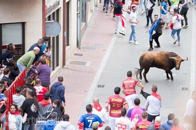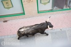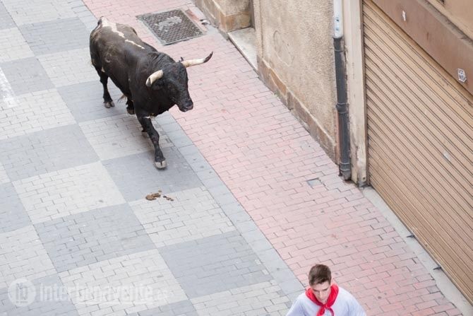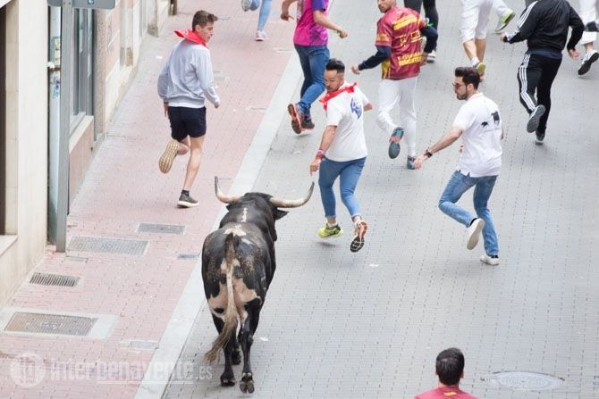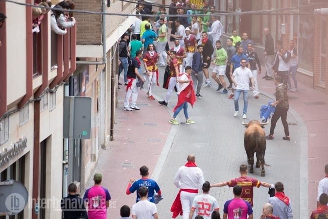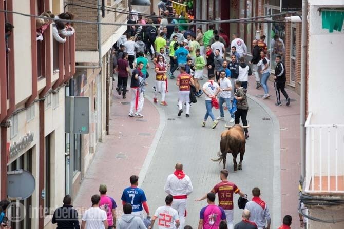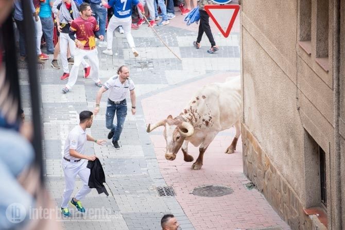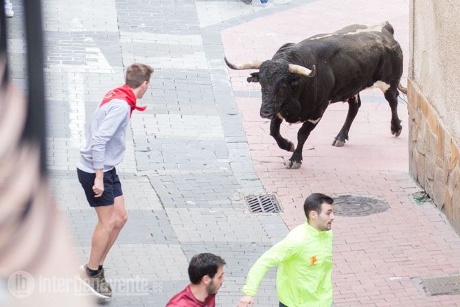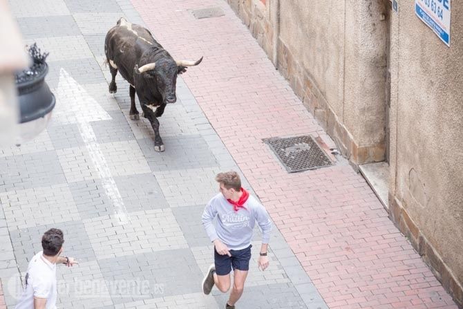 Jamonero, el segundo toro elegido por Charamandanga y procedente de la ganadería de Enrique Serrano, fue algo más rápido que el anterior astado realizando el primer trayecto del recorrido establecido sin el apoyo de los cabestros, aunque finalmente se resistía a la llamada de los aficionados, alargando su permanencia en la calles hasta las 20:52 horas, momento en el que se escuchaba la bomba que avisaba de que ambos astados se encontraban en el toril.