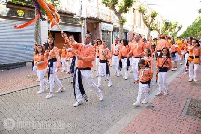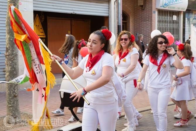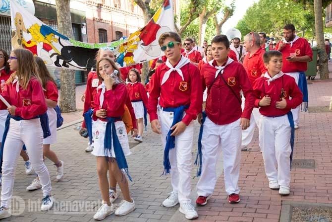 Una tarda radiante, donde el sol calentaba con fuerza y animaba a mucha gente a acercarse a nuestra ciudad o salir a la calle para ver el colorido que proporcionan los mozos y mozas de estas peñas, amenizados por las charangas, sus cánticos y sus bailes.