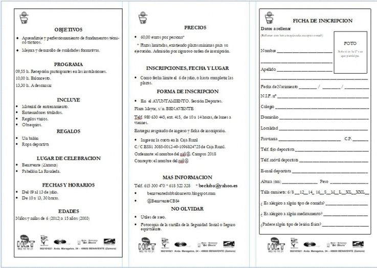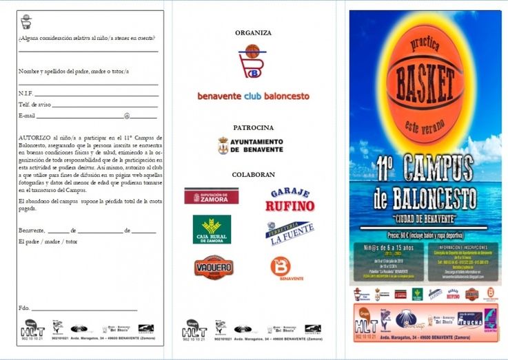 Un campus destinado a niños y niñas de 6 a 15 años. El precio de la inscripción es de 60€ y se puede tramitar en el Ayuntamiento de Benavente situado en la Plaza Mayor.