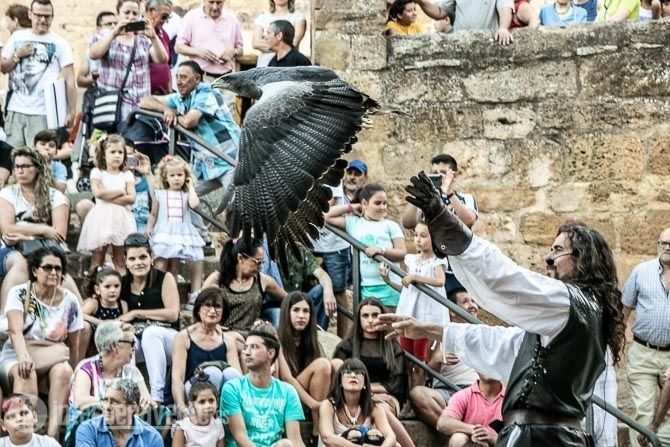 Tras el discurso inaugural, tuvo lugar en la Plaza del Grano una exhibición de cetrería por parte de la Aves de Valporquero, organizadores del Mercado Medieval. Varias aves rapaces como lechuzas, halcones o un buitre desplegaron sus alas ante el público asistente.