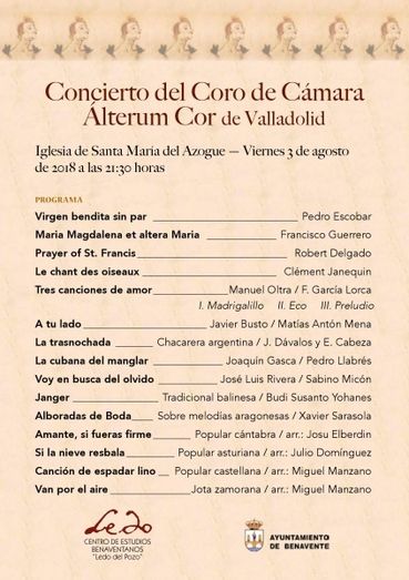 El CEB Ledo del Pozo programa este viernes el concierto del Coro de Cámara “Álterum Cor” de Valladolid