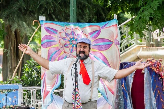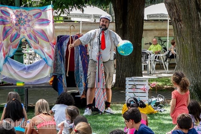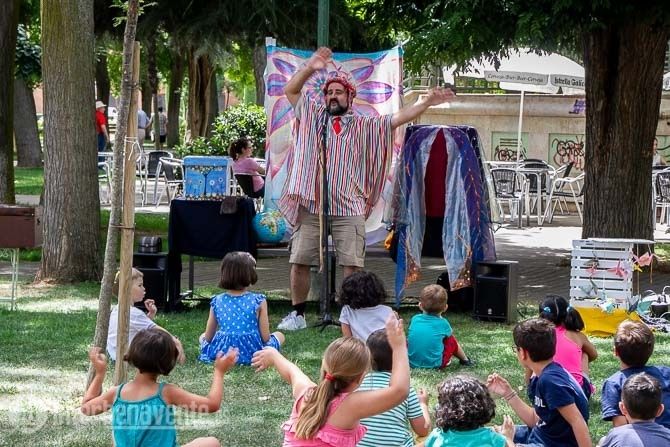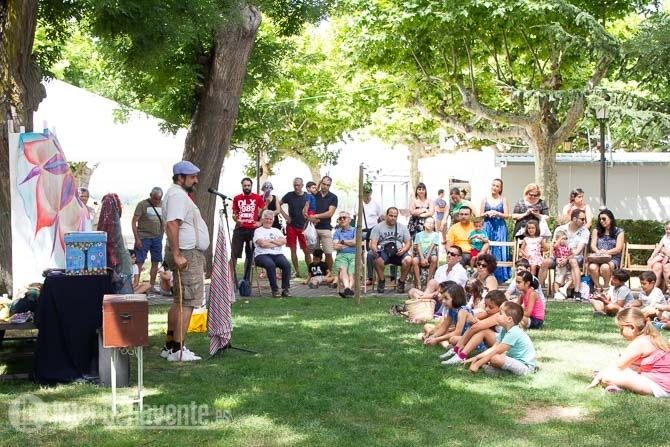 En la mañana de hoy sábado, el cuenta cuentos y filandón leonés Manu Ferrero consiguió mantener la atención de los niños durante más de una hora con sus historias de personajes muy reales.