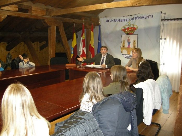 Un grupo de 20 alumnos de 5º de Primaria del Colegio “Fernando II”, acompañados de dos de sus profesores, han sido recibidos por el alcalde, Saturnino Mañanes, y la concejal de Educación, Ana San Román, en el Sala de Comisiones del Ayuntamiento.