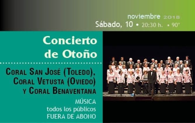 Concierto de Otoño a cargo de la Coral de San José (Toledo), Coral Vetusta (Oviedo) y Coral Benaventana